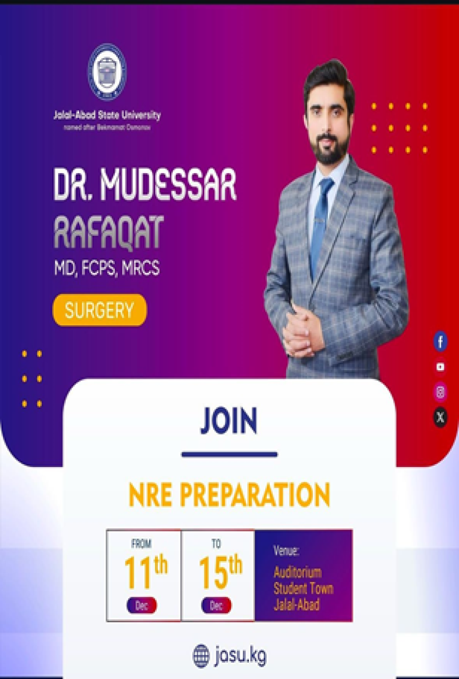 | 11. | 11/12/2024-15/12/2024 | SURGERY (SURGICAL DISEASE) | DR. MUDESSAR RAFAQAT | 40 HR |