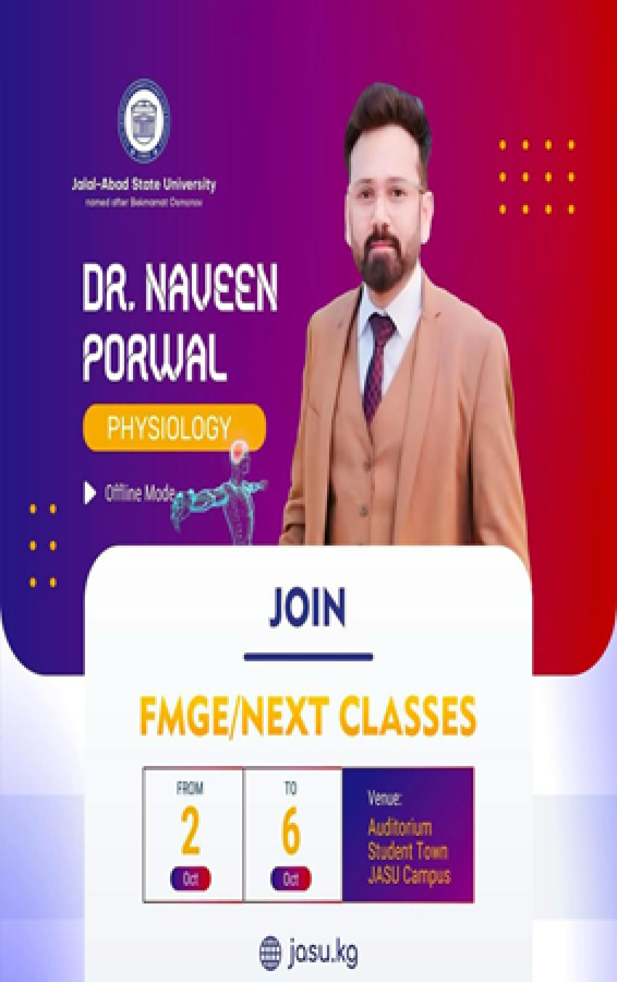 | 6. | 02/10/2024-06/10/2024 | PHYSIOLOGY (FORENSIC MEDICINE) | DR. NAVEEN PORWAL | 40 HR |