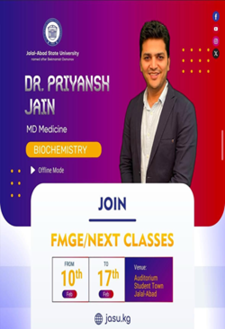 | 5. | 24/01/2025-26/01/2025 | PSYCHIATRY (PUBLIC HEALTH AND HEALTHCARE) | DR. NADEEM ZAFAR | 24 HR |