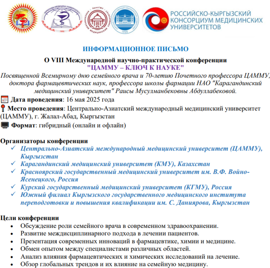 Место проведения: Центрально-Азиатский международный медицинский университет